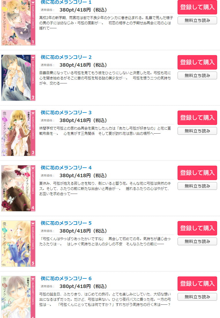年1月28日 最新情報 無料で読める少女漫画 ツイート 僕に花のメランコリー13巻(最終巻)のネタバレ感想と、漫画を無料で読む方法を紹介しています。 ※漫画を無料でもっと見る 僕に花のメランコリー期間限定無料 2 閲覧期限 2359 税込 0 円 0 pt 僕に花のメランコリー 2 418 3 pt 紙の本 僕に花のメランコリー 2 (マーガレットコミックス) 440 4